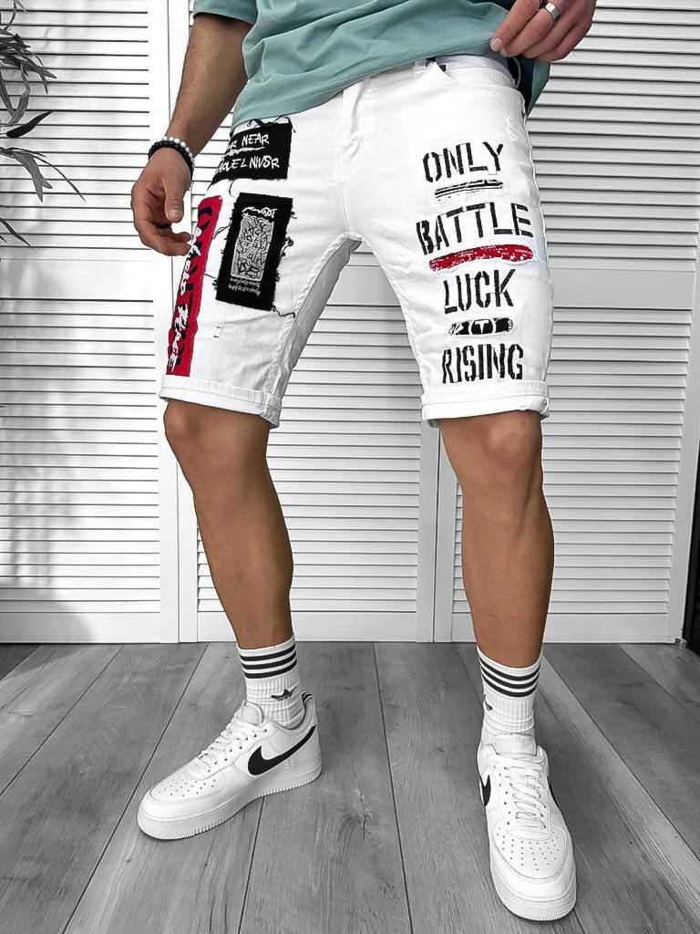 Blugi barbati scurti conici albi cu stikere 4062 H3-3