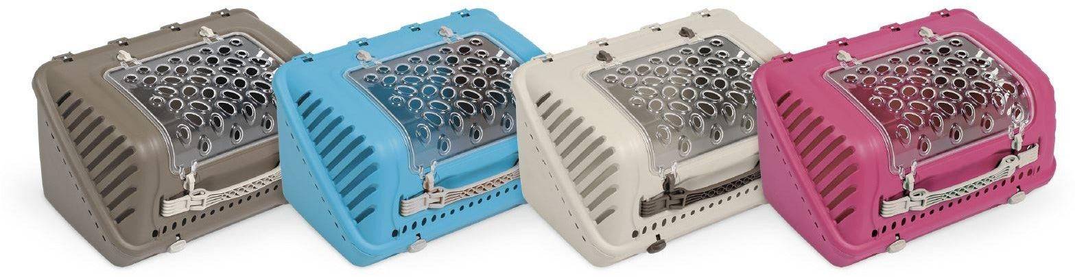 De asemenea, este prevăzută cu o uşiţă transparentă pentru ca animalul să aibă vizibilitate în timpul transportului, reducând astfel stresul asociat cu vizitele la veterinar.Cusca vine echipată şi cu o curea care se poziţionează pe umăr, facilitând astfel transportul.