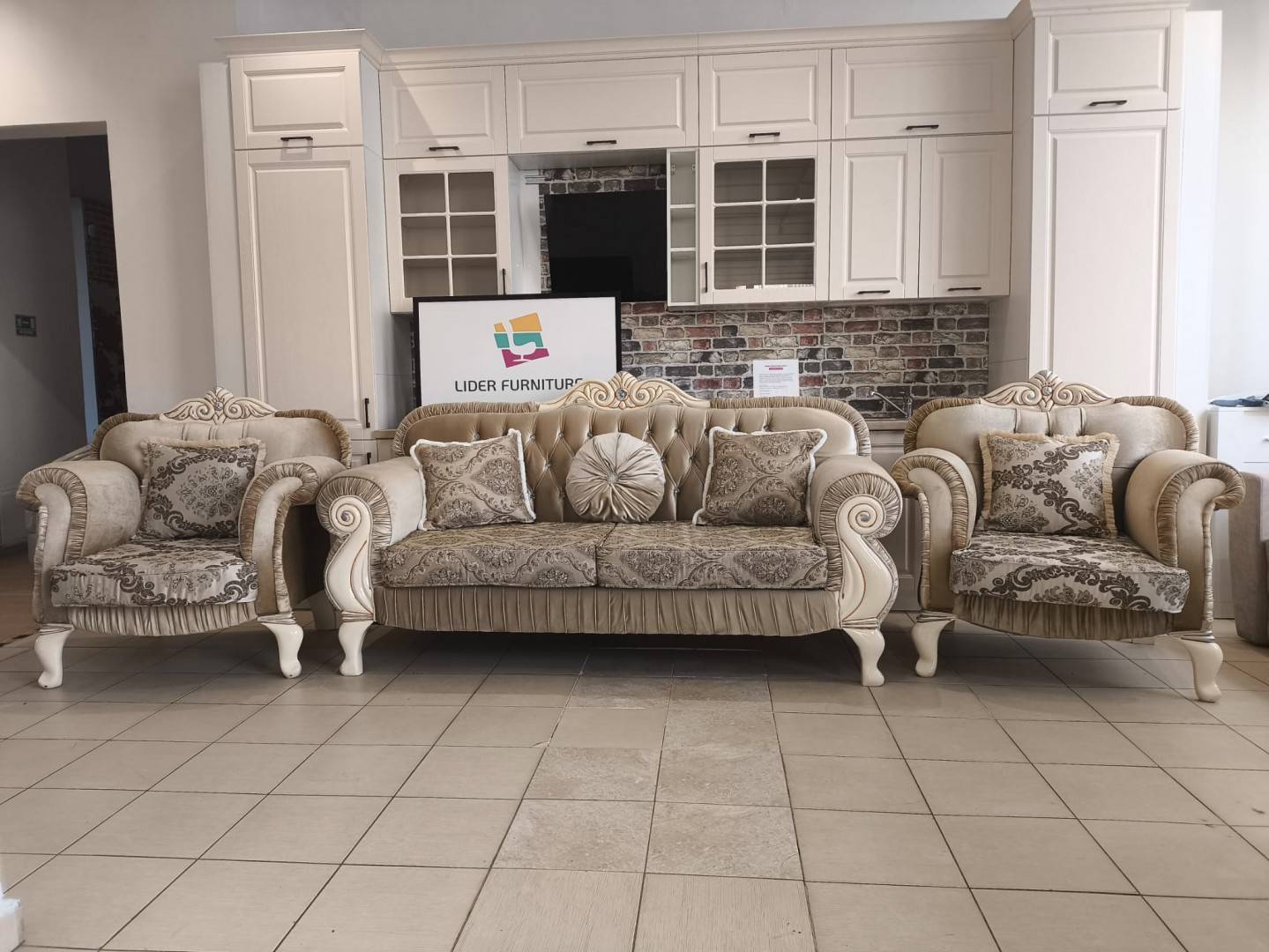 ? Telefon: 0758 995 511 Set living elegant – canapea + 2 fotolii Set de living elegant, compus din 1 canapea și 2 fotolii, realizat într-un stil clasic rafinat, ideal pentru un living primitor și sofisticat.
