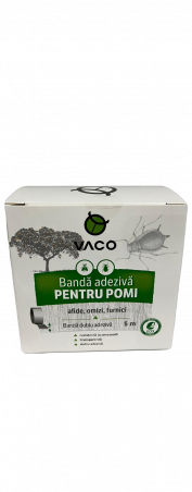 Bandă adezivă ecologică pentru protecția copacilor – 5M VACO ECO este o bandă adezivă ecologică destinată monitorizării și combaterii dăunătorilor la pomii fructiferi, ornamentali, forestieri și în pepinierele cu arbori tineri.