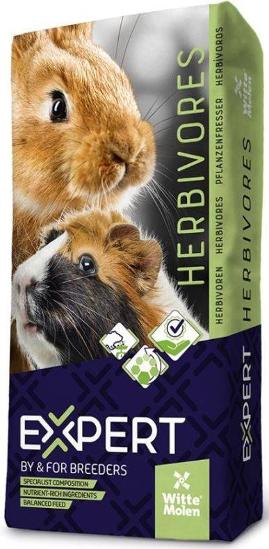 WITTE MOLEN Expert Hrană pentru iepuri 20kgMâncare pentru rozătoareCOMPOZIȚIE: Derivate de origine vegetala, cereale (40%), legume, seminte, minerale, uleiuri şi grasimiADITIVI:Vitamina A 8800 IUVitamina D3 1300 IUVitamina E 20 mgColoranţiINDICAȚII DE FOLOSIRE ŞI PĂSTRARE: În funcţie de stadiul de viaţă şi starea de sănătate, animalele au nevoie de aproximativ următoarea cantitate de hrană pe zi: hamster pitic: 6 grame; hamster: 10 până la 20 de grame; şobolan: 15 până la 20 de grame; porc de Guinea (cobai): 30 grame pe kilogram greutate corporală; iepure: 25 grame pe kilogram de greutate corporală.